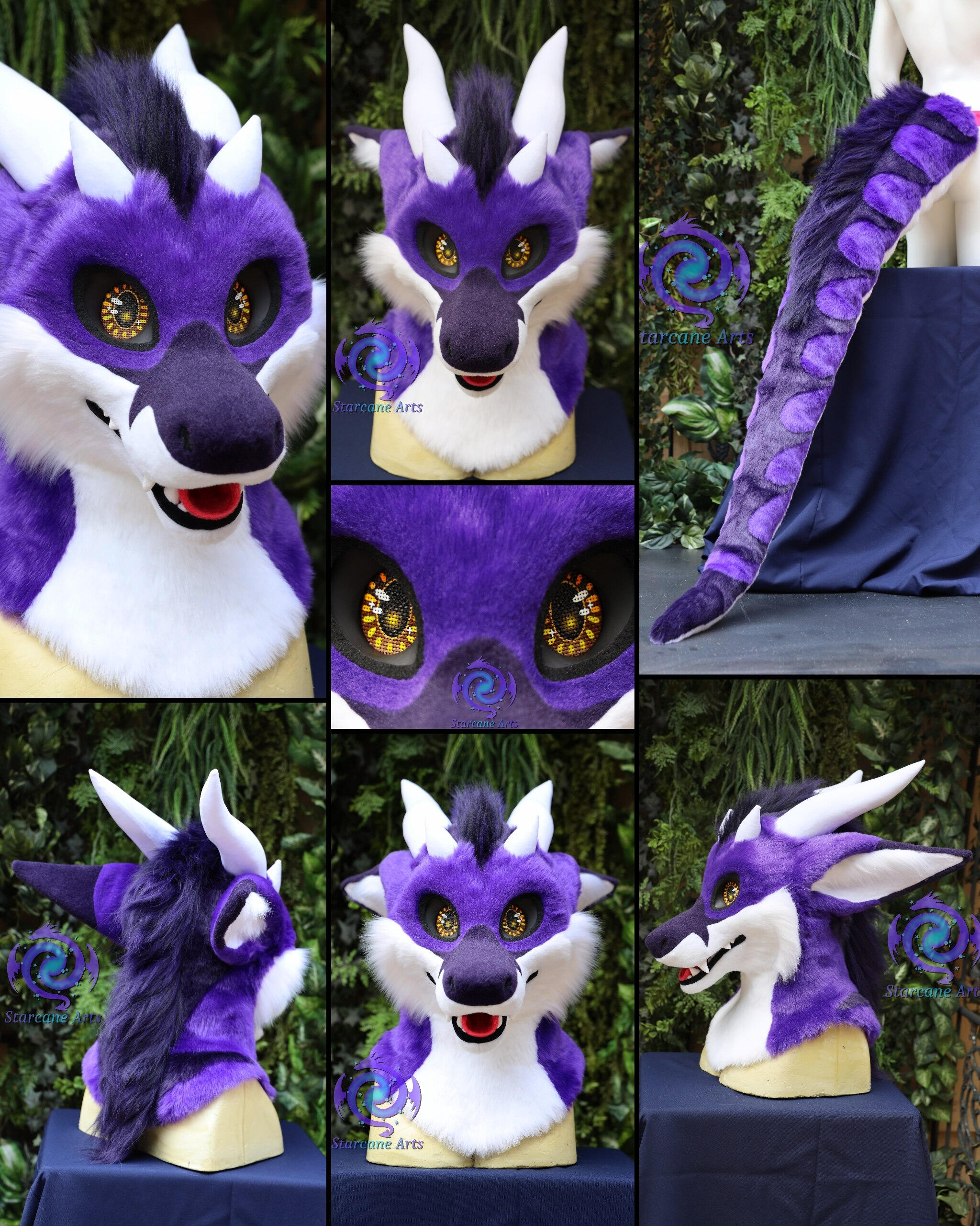 Starcane Arts is a team of two full-time artists who specialize in building hand crafted fursuits. We each have over a decade of fursuit building experience, and in 2020 we officially started Starcane Arts together. We have had the pleasure of bringing many wonderful characters to life in that time and pride ourselves on our reliability, professional yet kind communication, and attention to detail.Our studio theme is "Space and Magic" so we try to incorporate that into our wares and displays wherever we can!In addition to adoptable fursuits we like to offer a variety of fursuit parts, such as tails and paws, which are all made using our own patterns. We have also created and offered various smaller items such as resin TTRPG dice, fursuit bandanas and decorative mica powder potions. For in-person events we offer fursuit supplies such as fursuit safe brushes, balaclavas and belts for attendees that either forgot theirs at home or need some new gear to go with a new suit! We try to have a variety of wares at varying price points; a little something for everyone!We have discovered a love of vending at in-person events, and are excited to bring our vibrant displays and products to more of them. We look forward to traveling to new places, meeting other artists, and learning more about ourselves and others along the way.Thank you for considering us as part of your vendor team!